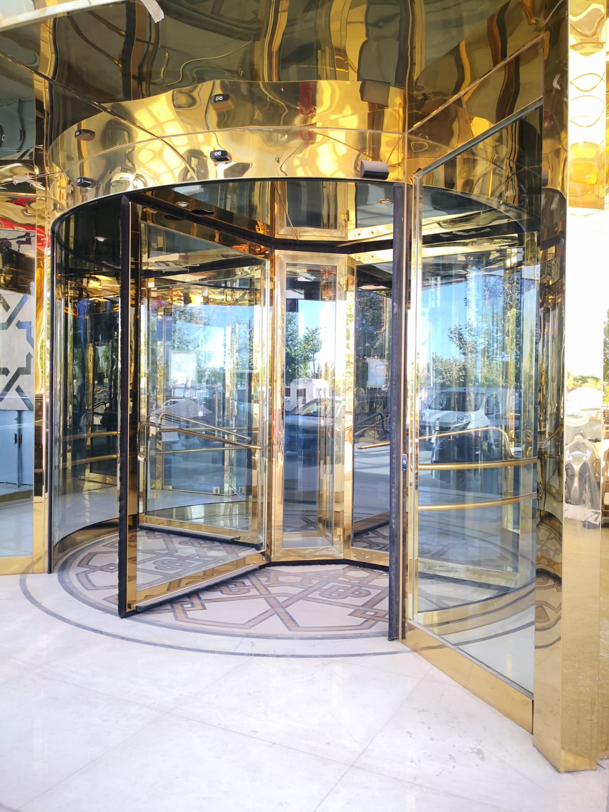 Exodoor automatic revolving doors with display windows, available in sizes ranging from ø 3600mm to ø 6000mm, are an excellent solution for the entrances of supermarkets, hypermarkets, airports, shopping malls, and similar buildings where shopping and luggage carts are used. In addition to buildings requiring high capacity, they can also be preferred as aesthetically complementary doors due to their imposing appearance and the option to have a display window in the center.