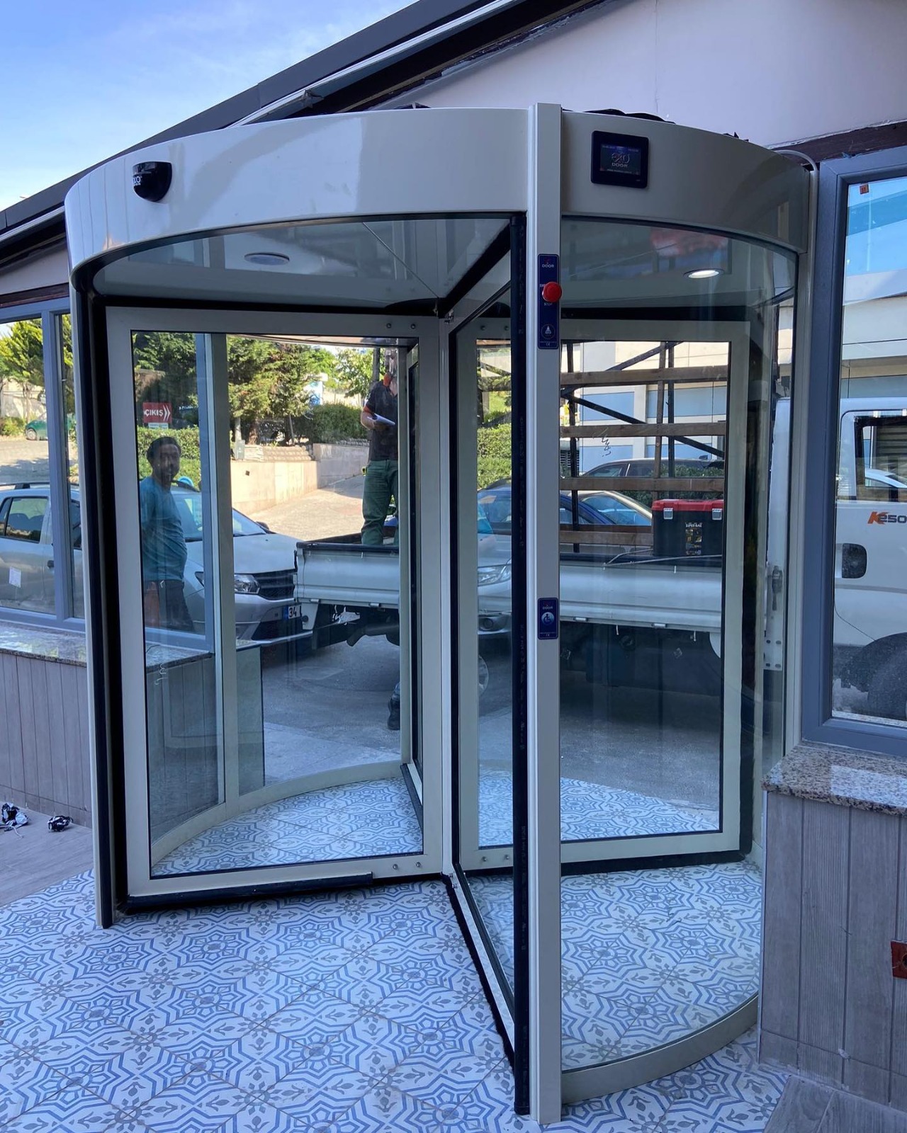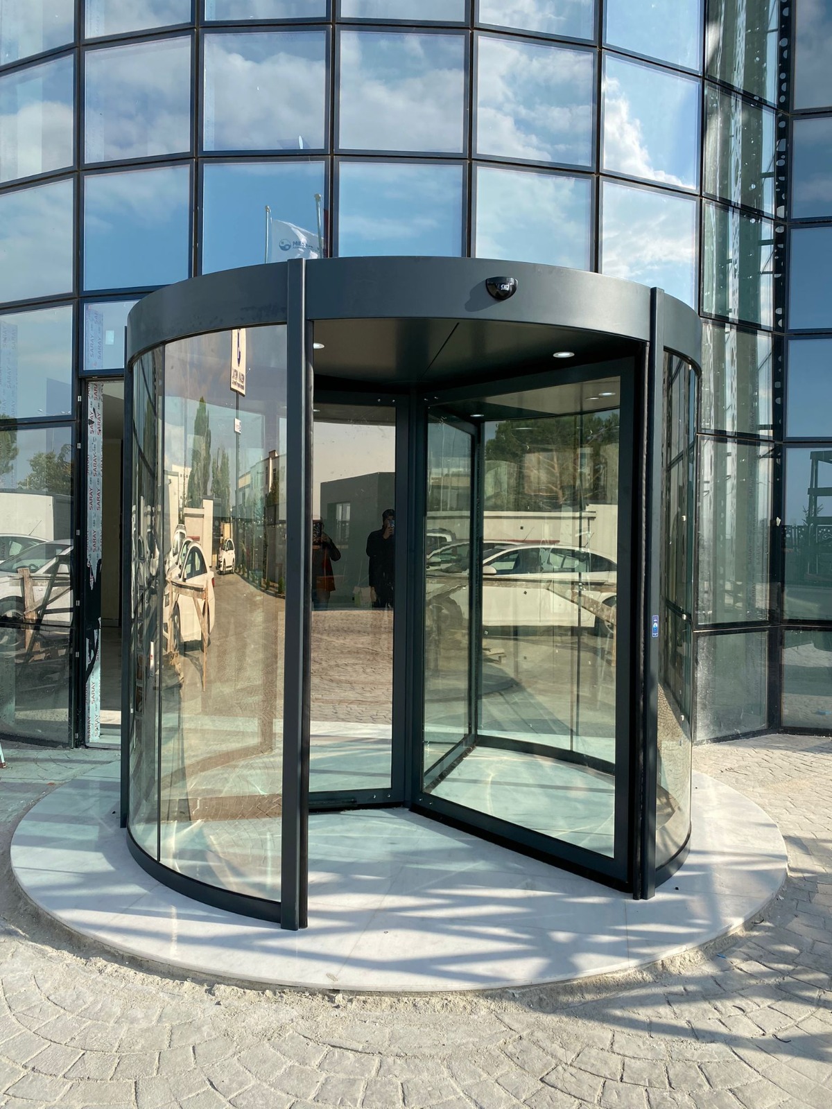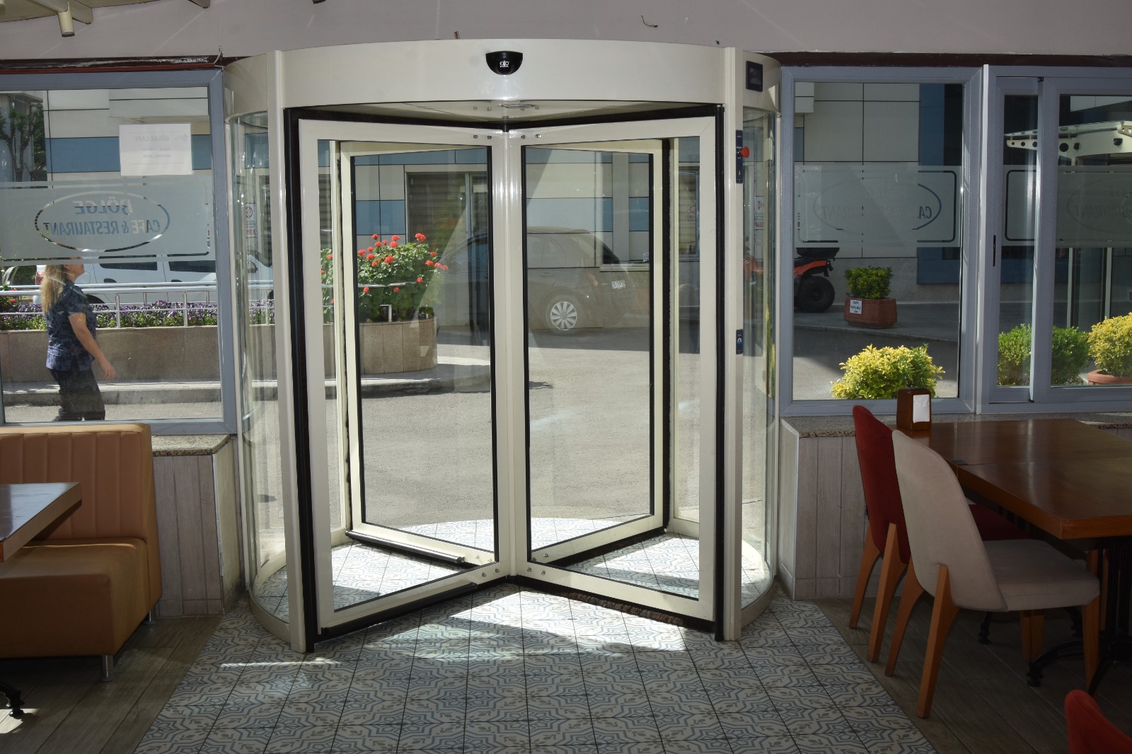 The difference between Automatic Revolving Doors and Manual Revolving Doors is the sensors located at their entrances and exits. These are the most practical products, powered by a motor mechanism and equipped with smart security systems, ensuring energy savings as well as safety during human passage.