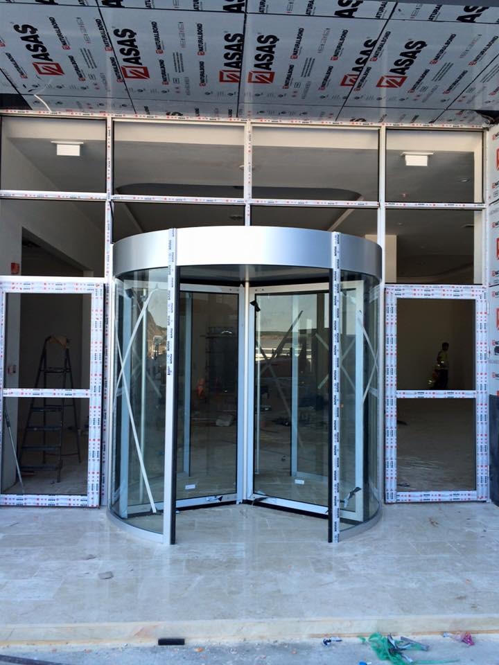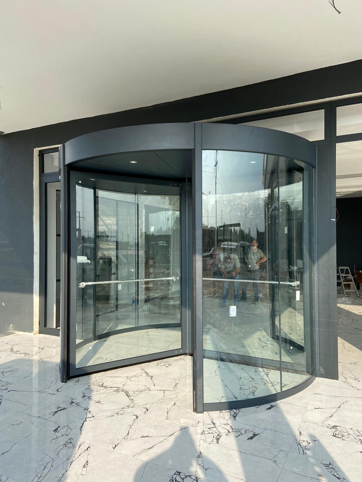 One of the most important features of Manual Revolving Doors is that they can be converted to Automatic Revolving Doors at any time. The system is manufactured and installed with its own unique profile system, featuring 3-4 wings, an elegant design, minimal canopy height, and natural anodized or painted in the desired RAL color.