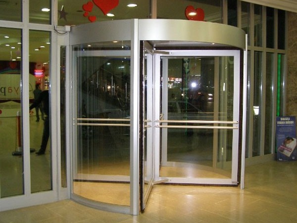 The curved glass panels and side panels used in manual revolving doors are made of 8 mm tempered glass.