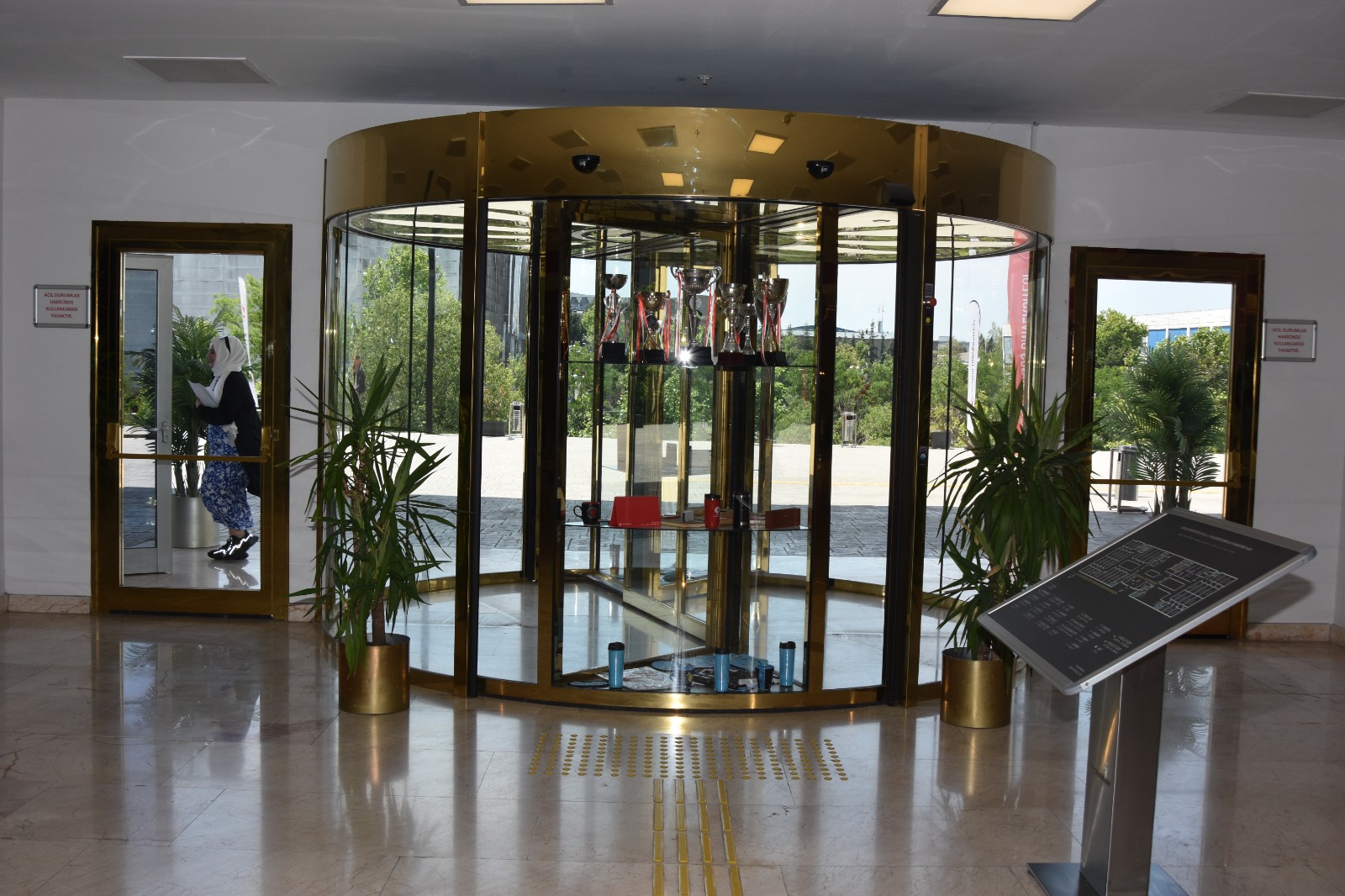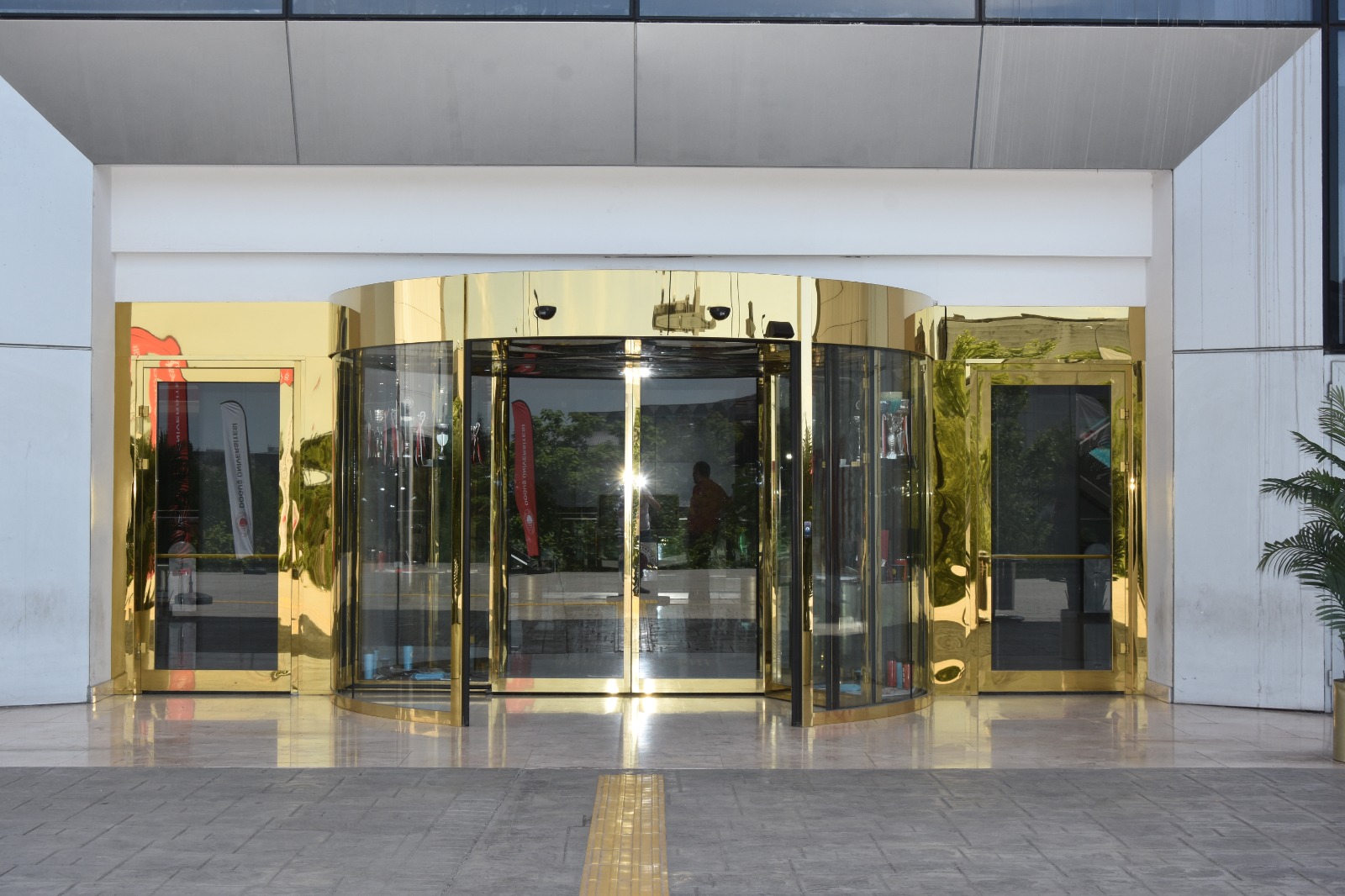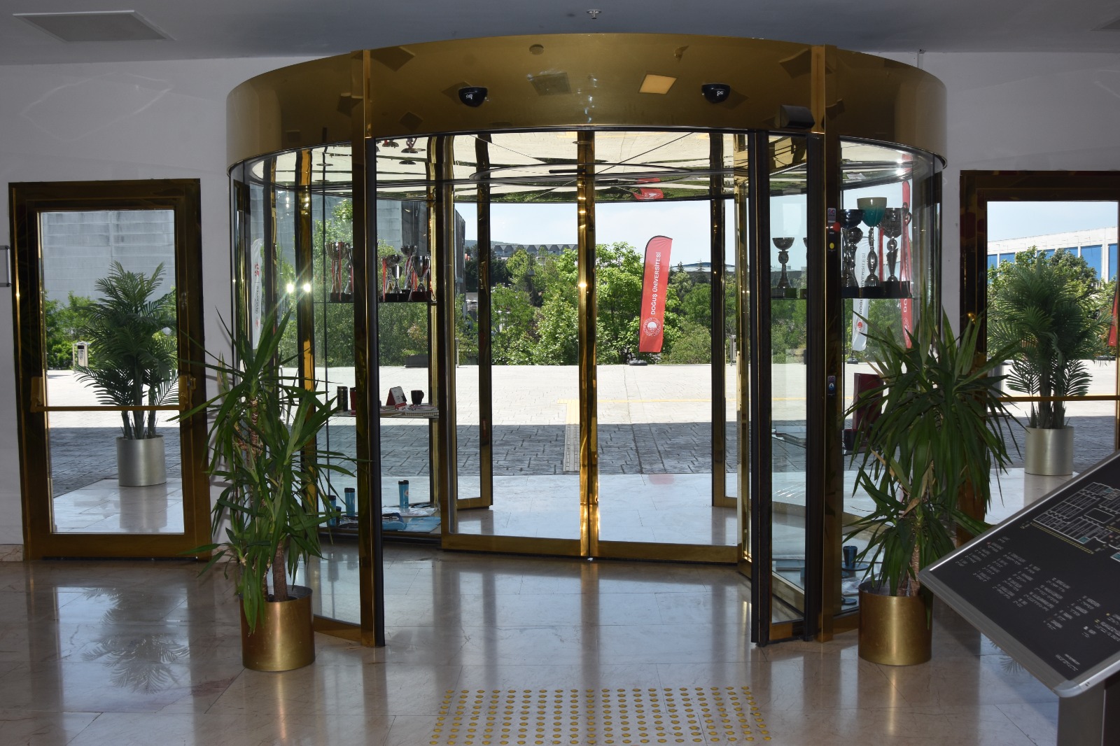 Exodoor kayar kapılı vitrinli Döner Kapı modelimizden, Fotoselli kayar kapıların veya dairesel açılır standart kapıların sağladığı serbest geçiş genişliklerini elde edebilirsiniz.